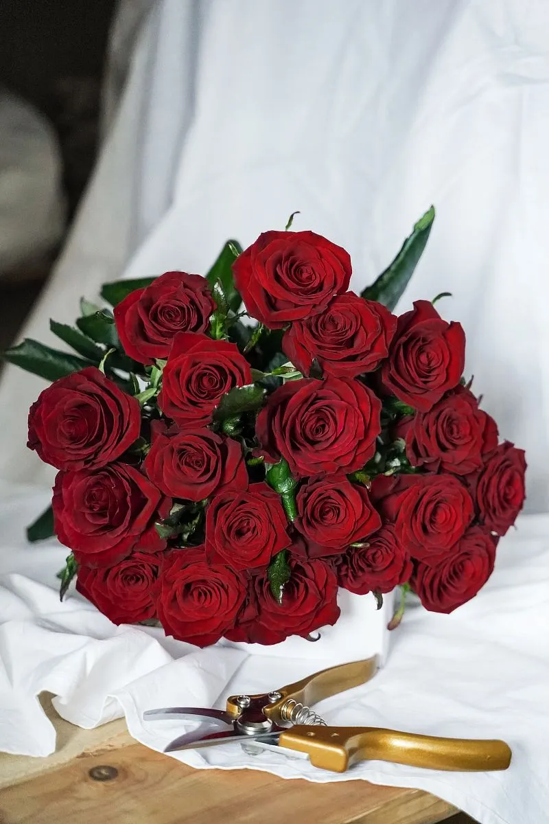 Вместе с цветами адресат получит короткую инструкцию по подрезке и пакетик с кризалом — средством для продления жизни букета.