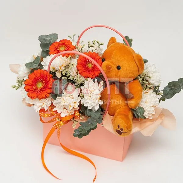 Цветы в составе Гербера, Лимониум Натуральный (Роял), Оазис , Эвкалипт Де Люкс, Декор 600 руб, Мягкая игрушка 1000 руб, Хризантема Кустовая , Бумага Тишью, Расходный материал, Лента текстиль 100 руб, ✓ Все цветы в наличии