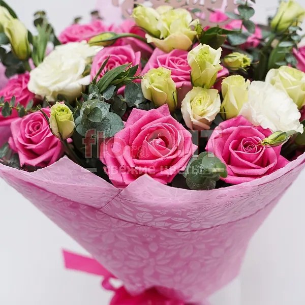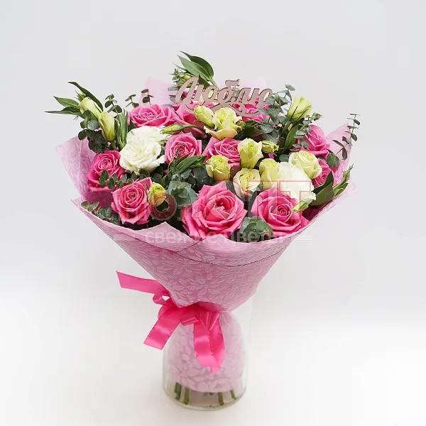 Букет № 273 с розами и белой эустомой
