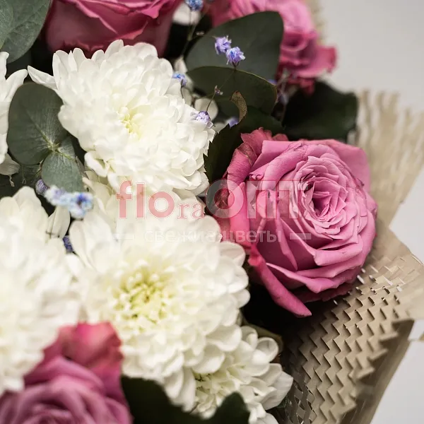 Возможна незначительная замена элементов композиции. Если какого-то цветка или оттенка, как на фотографии, не окажется в салонах, то флорист предложит вам варианты и пришлёт фото на выбор в WhasApp.