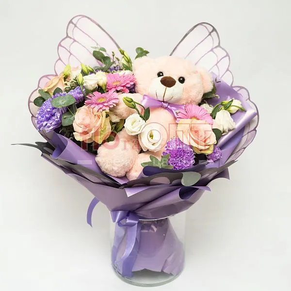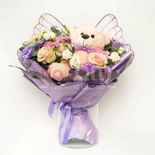 Букет № 541 фиолетовый с игрушкой  — фото 7