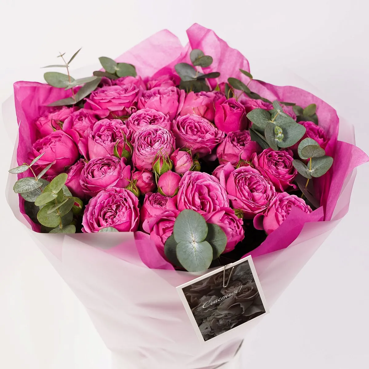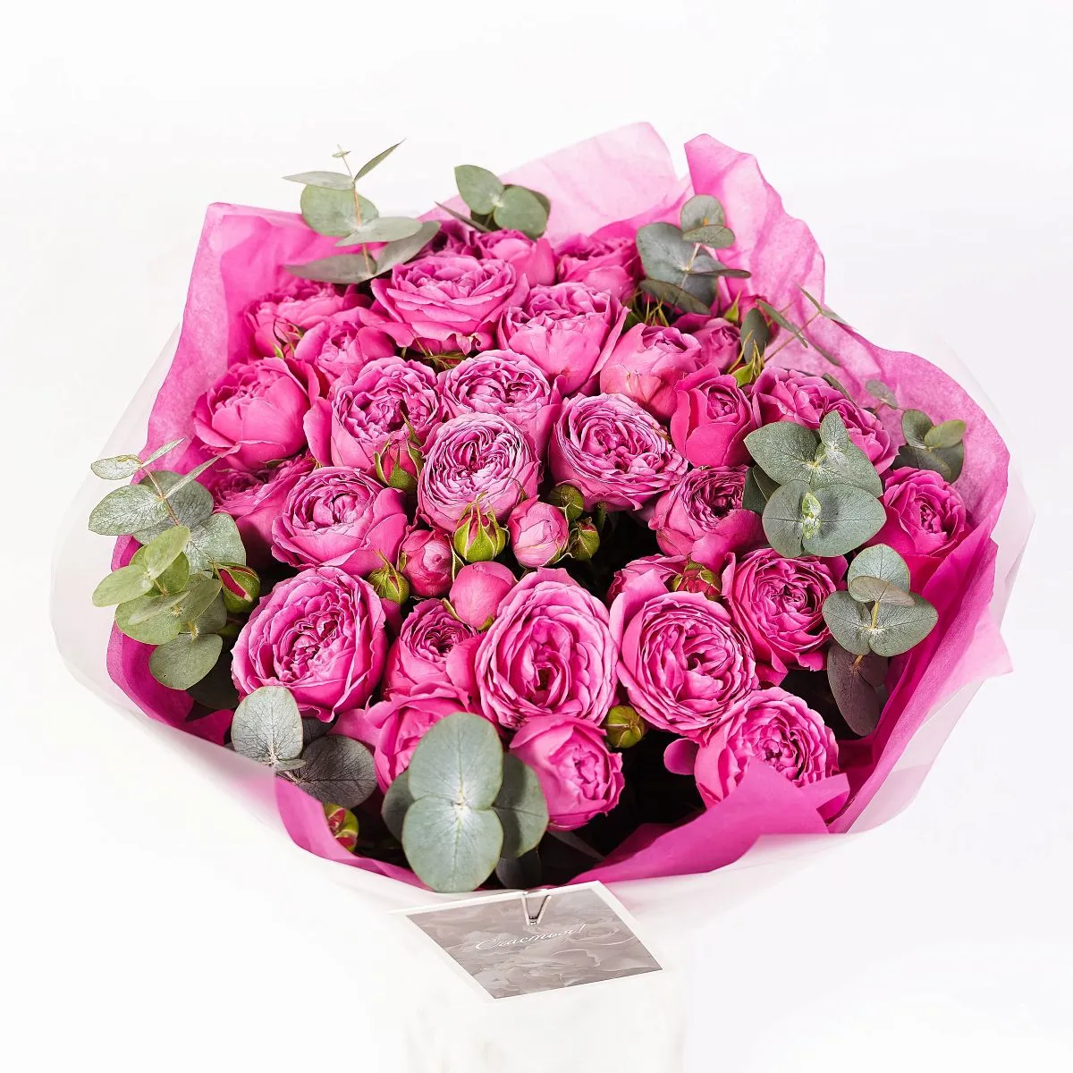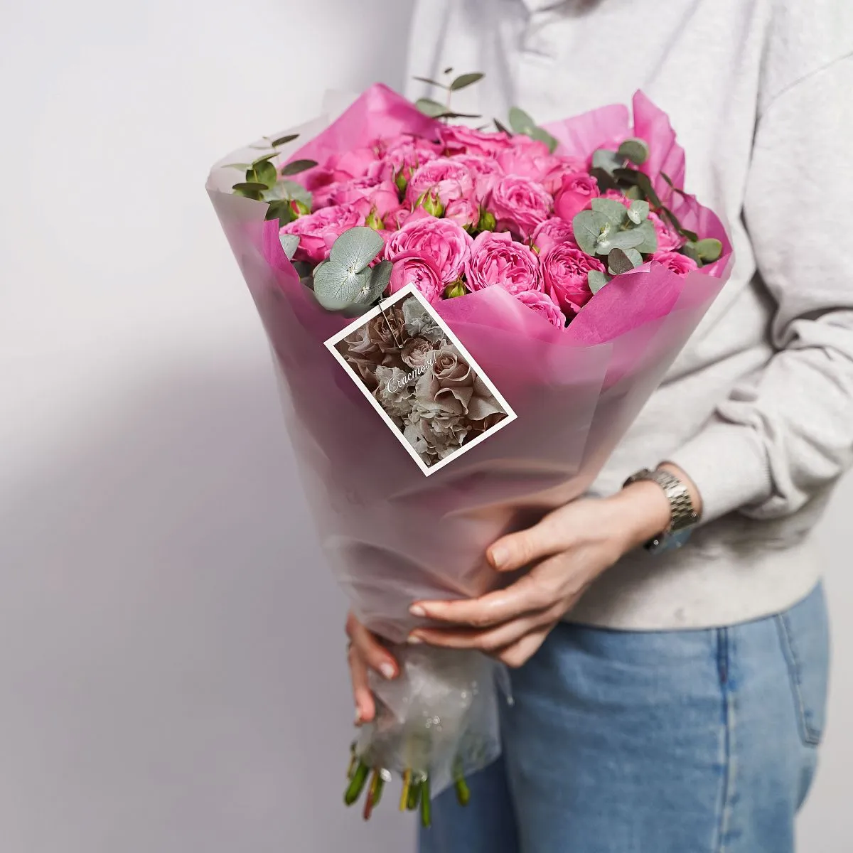 Цветы в составе Пленка 170 руб, Эвкалипт Де Люкс, Открытка 50 руб, Роза Пионовидная 50 см, Бумага Тишью, Расходный материал, Лента текстиль 100 руб, ✓ Все цветы в наличии