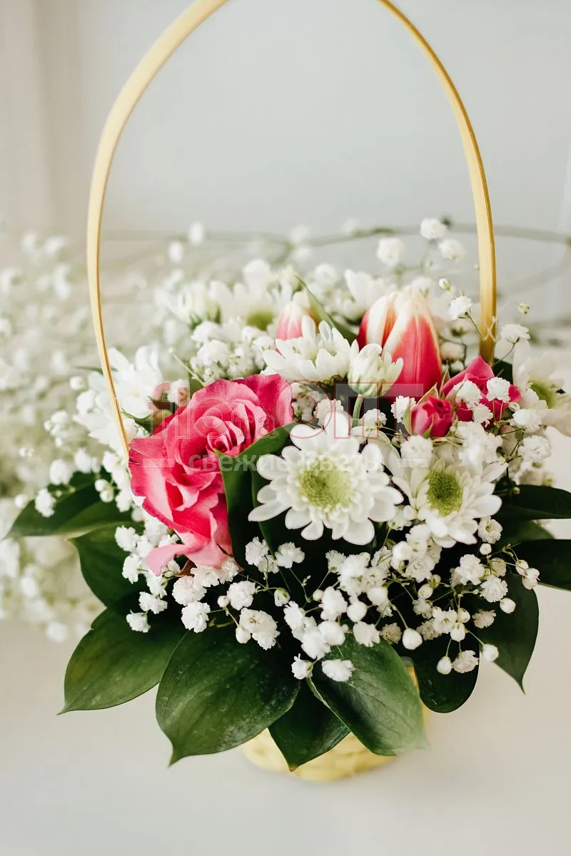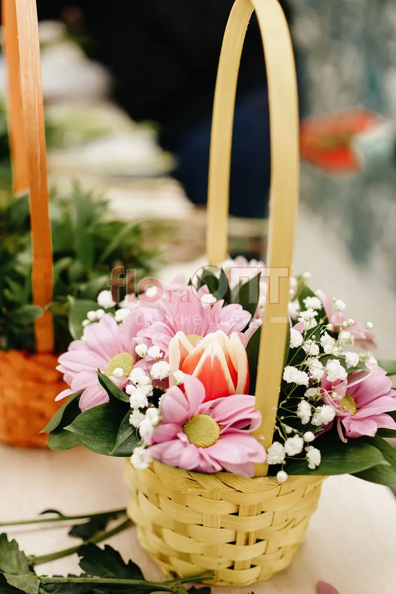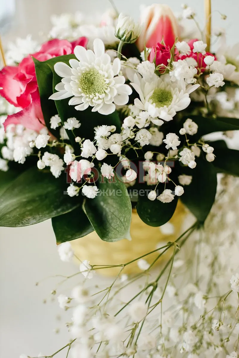 Цветы в составе Гипсофила, Корзина 350 руб, Оазис 300 руб, Хризантема Кустовая, Роза Микс 60 см , ✓ Все цветы в наличии