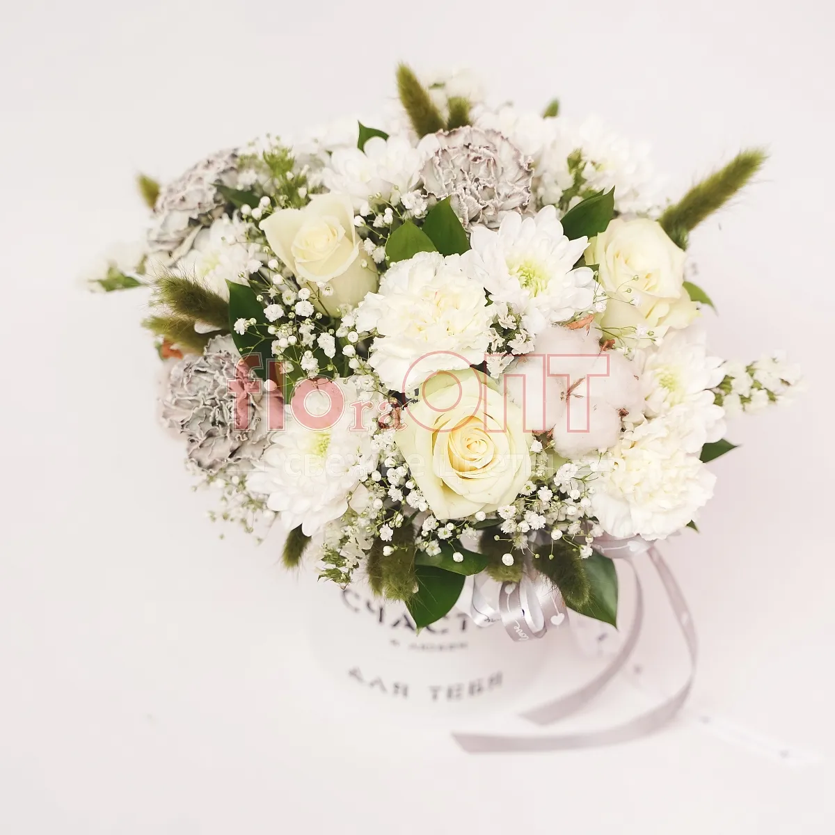 Возможна незначительная замена элементов композиции. Если какого-то цветка или оттенка, как на фотографии, не окажется в салонах, то флорист предложит вам варианты и пришлёт фото на выбор в WhasApp.