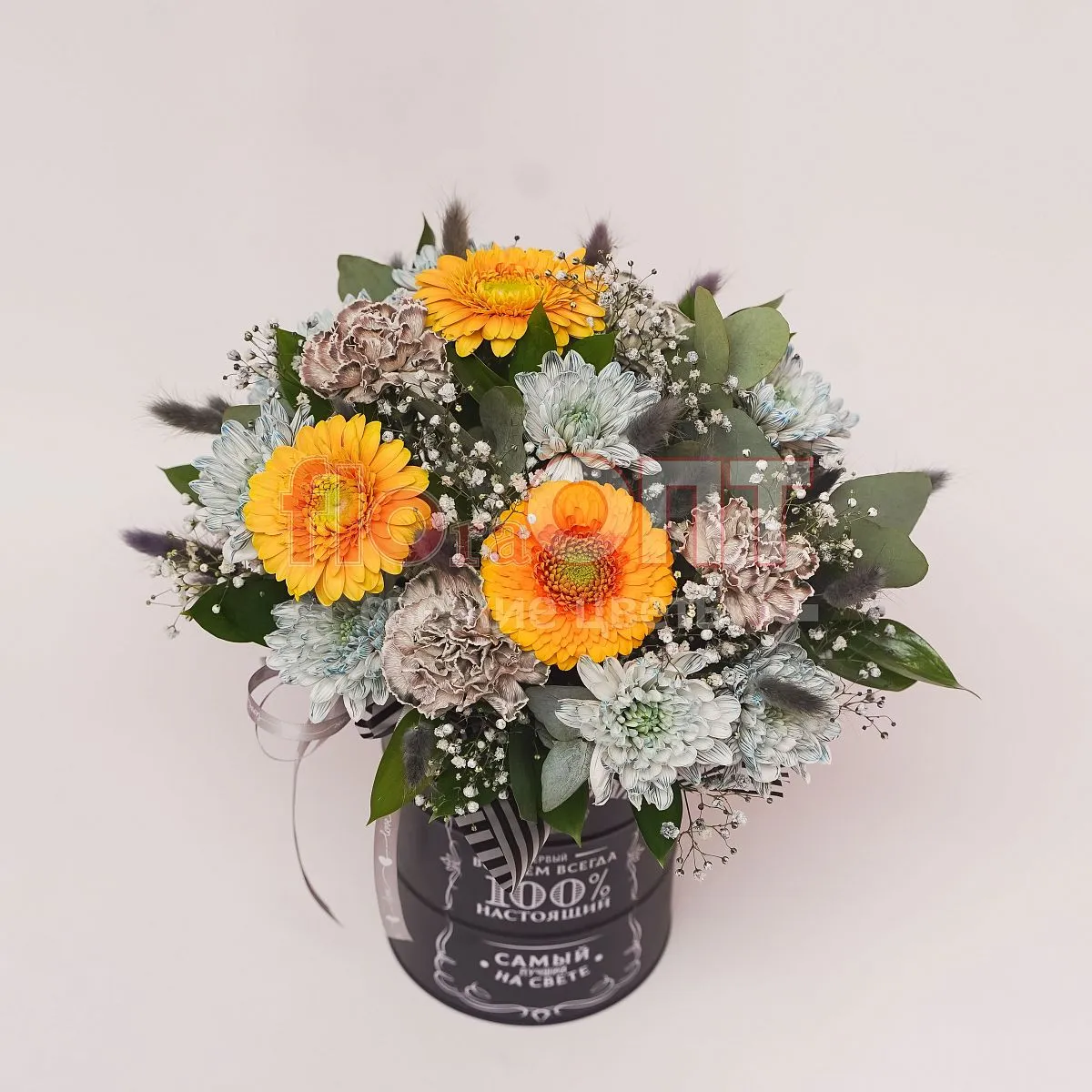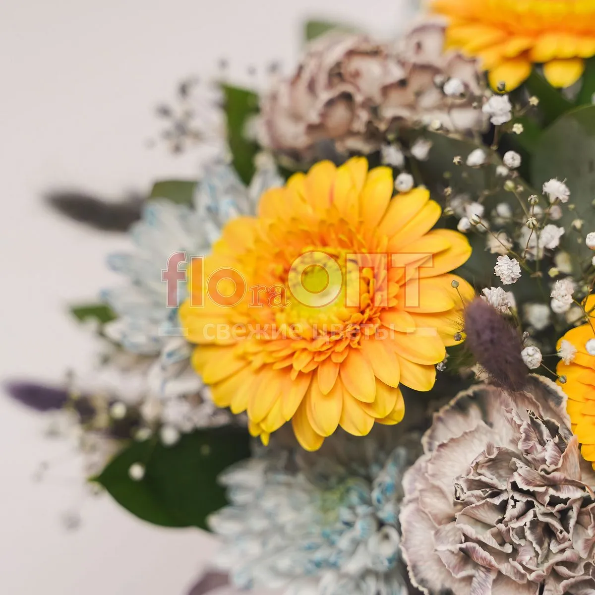 Возможна незначительная замена элементов композиции. Если какого-то цветка или оттенка, как на фотографии, не окажется в салонах, то флорист предложит вам варианты и пришлёт фото на выбор в WhasApp.