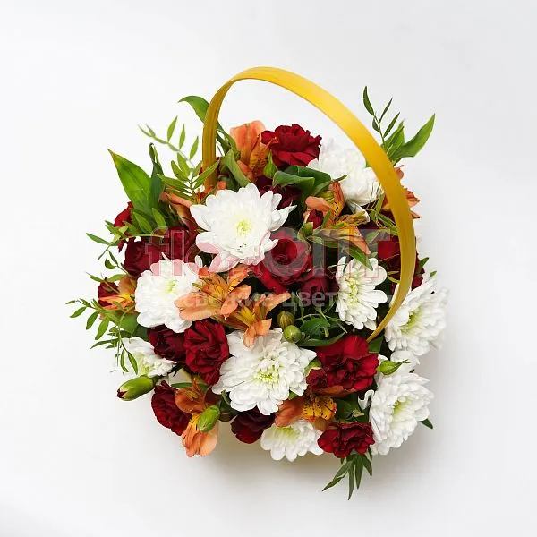 Цветы в составе Альстромерия, Гвоздика Кустовая, Оазис , Роза Китай кустовая 50 см, Хризантема Кустовая, Корзина 500 руб, Фисташка Пучок, ✓ Все цветы в наличии