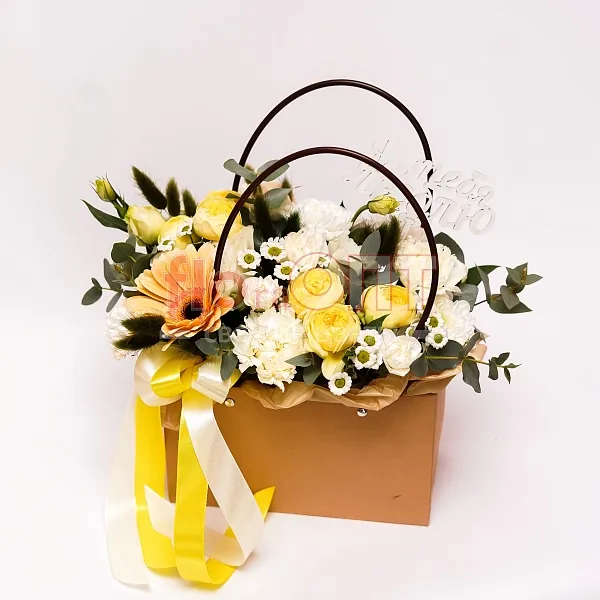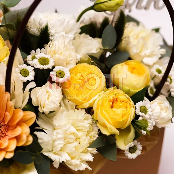 Возможна незначительная замена элементов композиции. Если какого-то цветка или оттенка, как на фотографии, не окажется в салонах, то флорист предложит вам варианты и пришлёт фото на выбор в WhasApp.