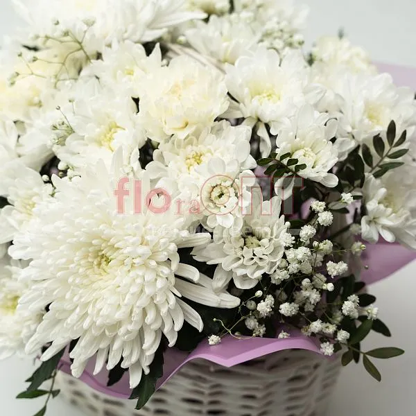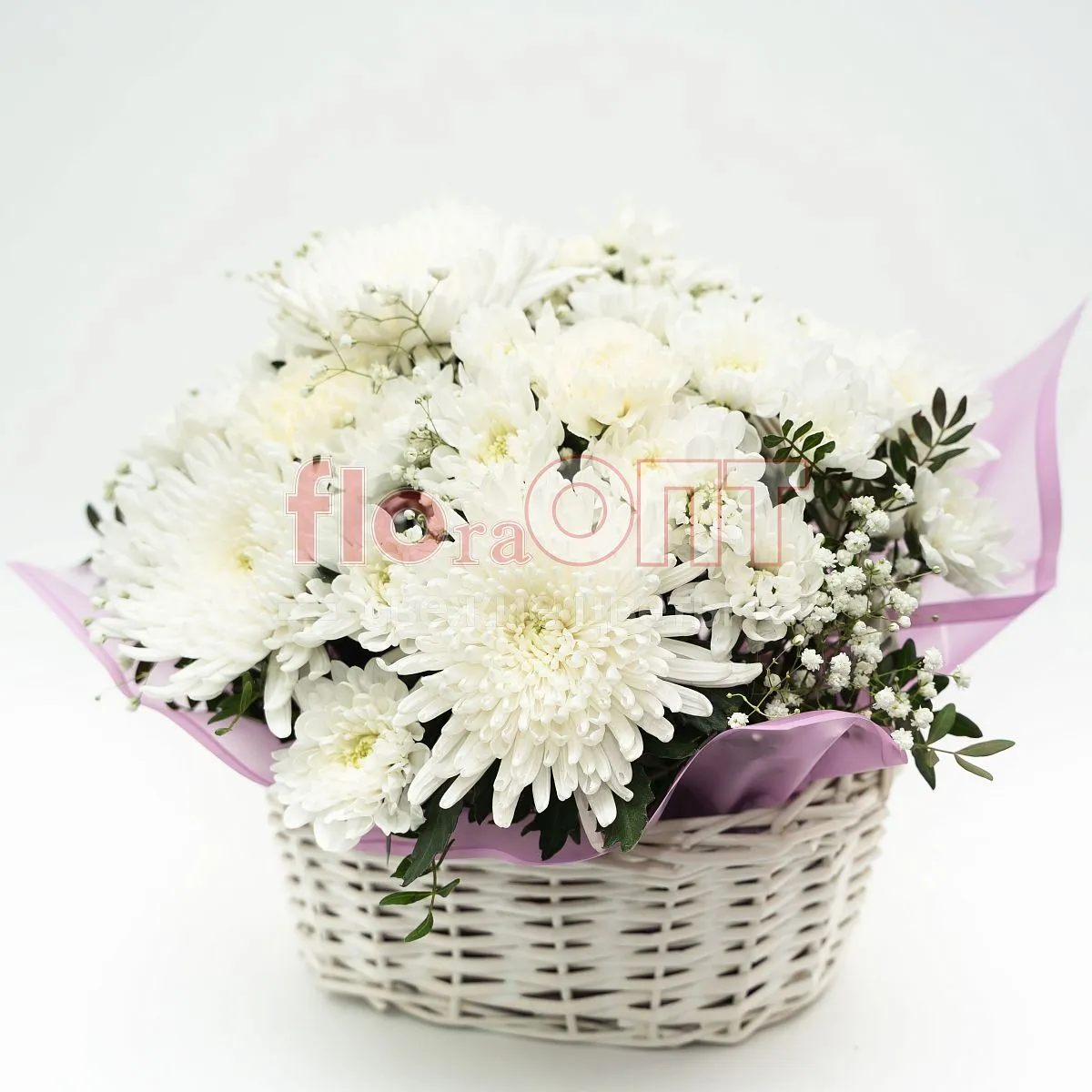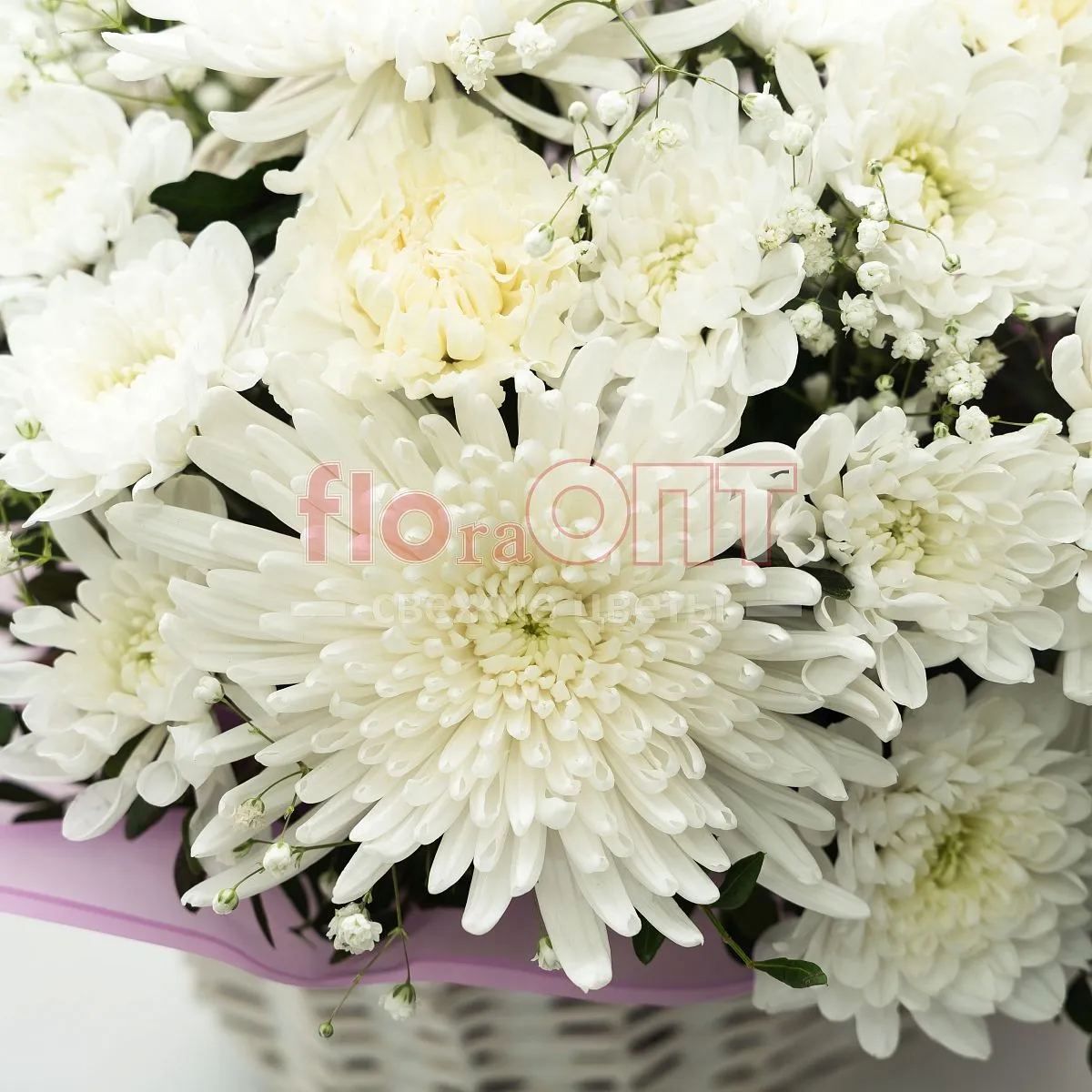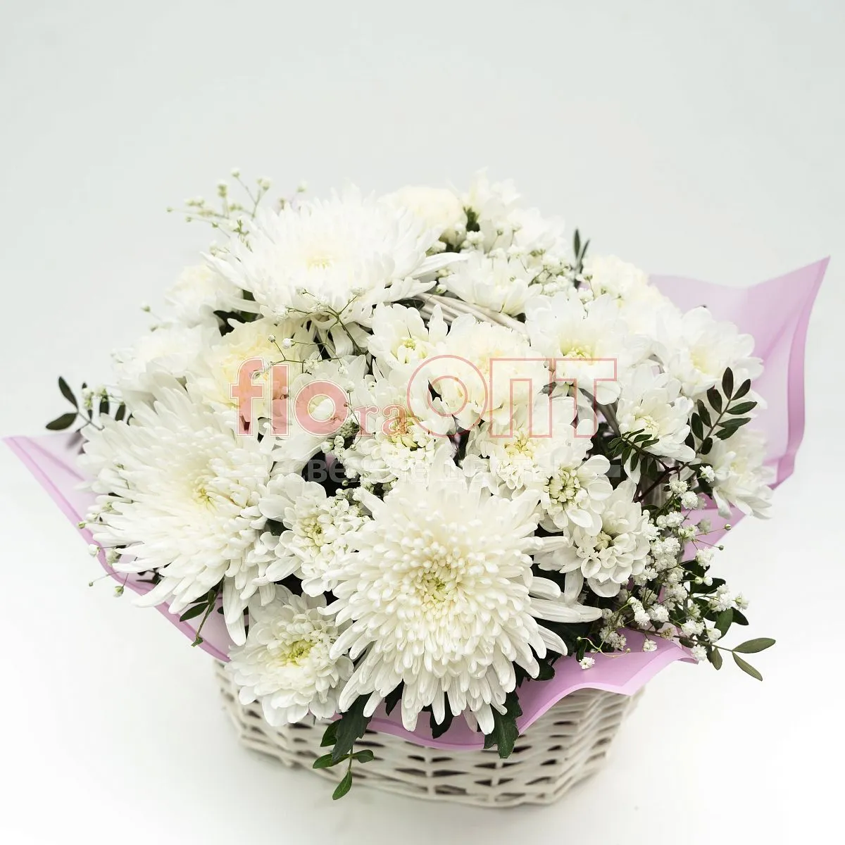 Композиция № 183 с белой хризантемой и кустовой гвоздикой