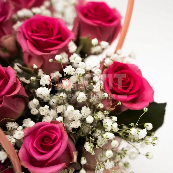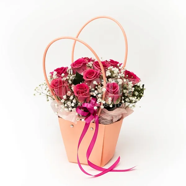Композиция № 211 с розовыми розами в сумочке