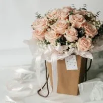 Вместе с цветами адресат получит короткую инструкцию по подрезке и пакетик с кризалом — средством для продления жизни букета.