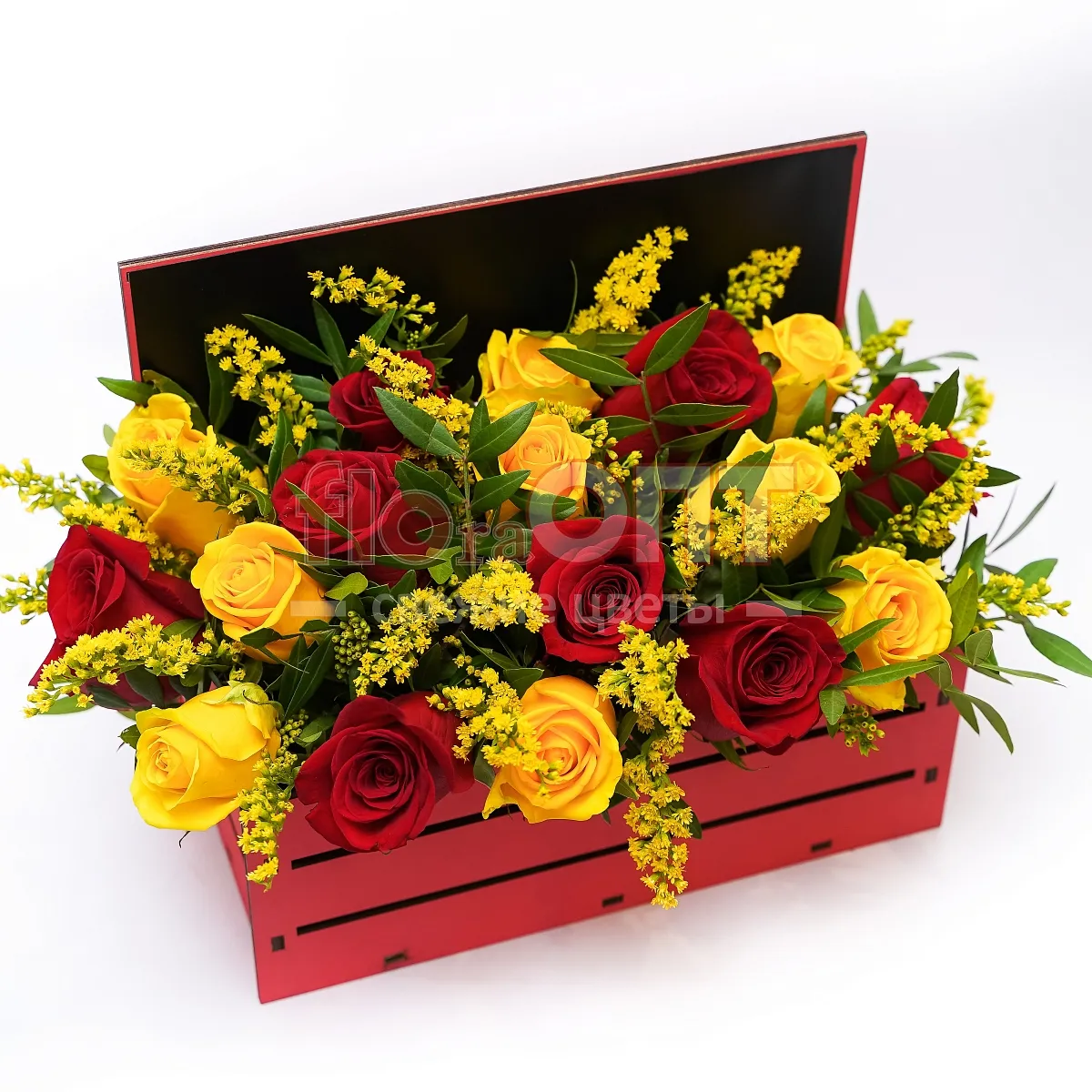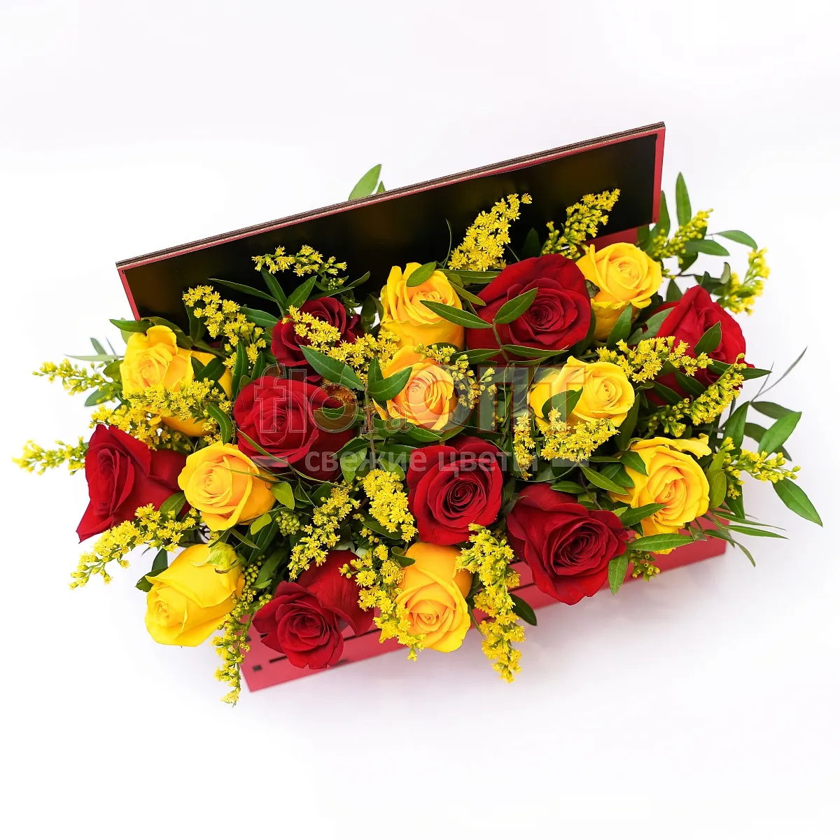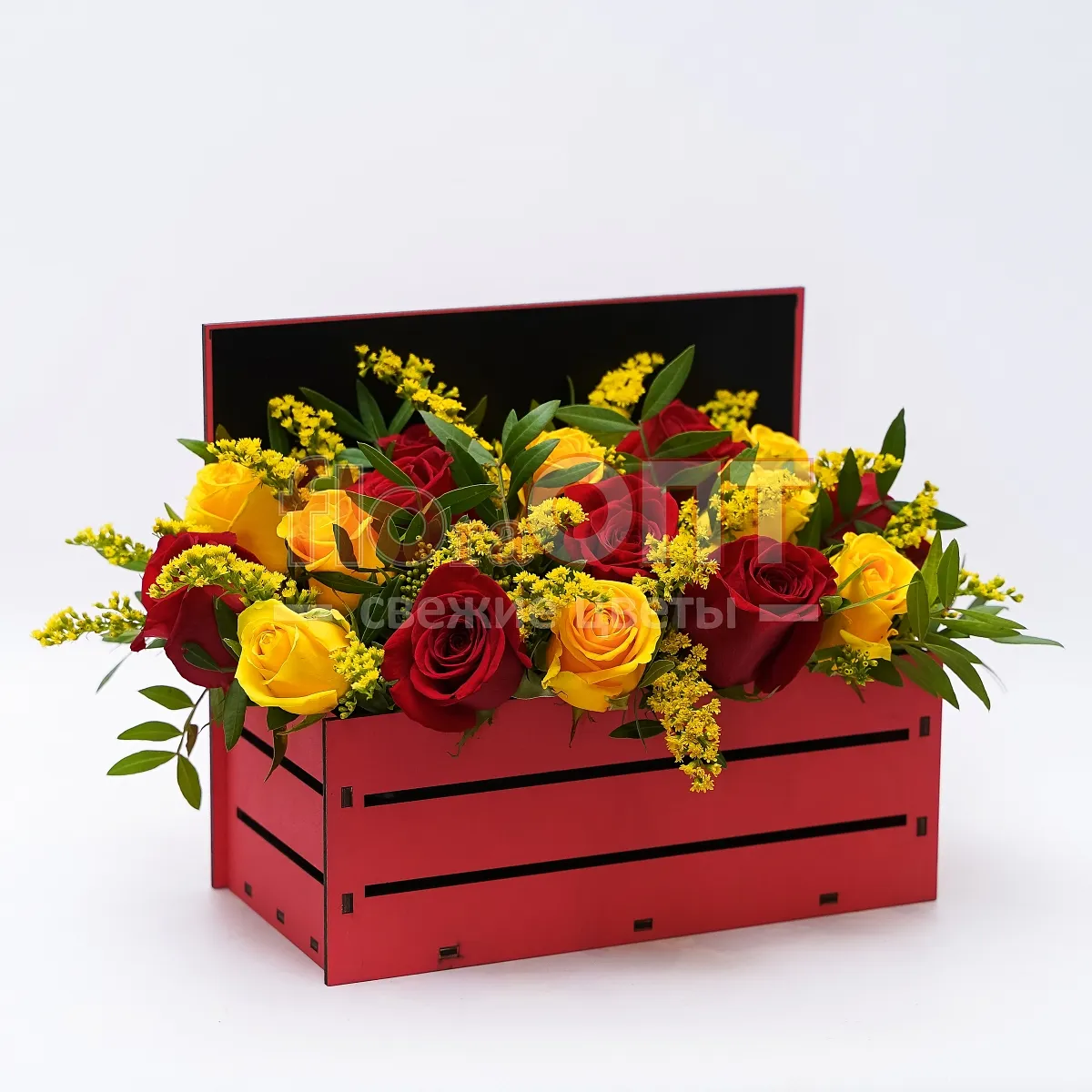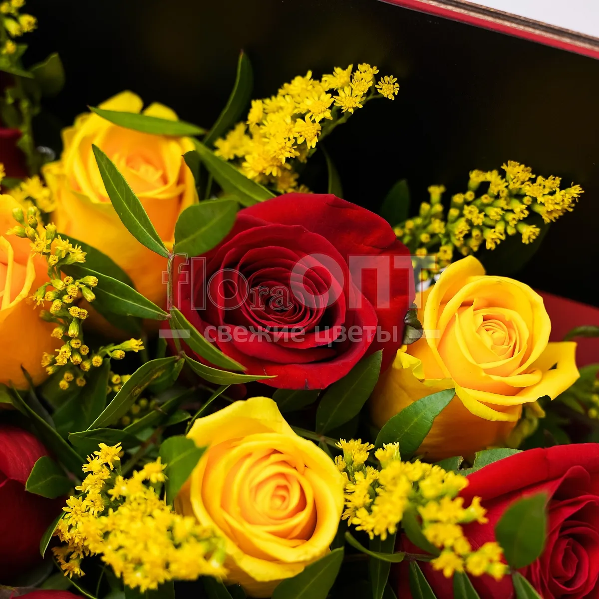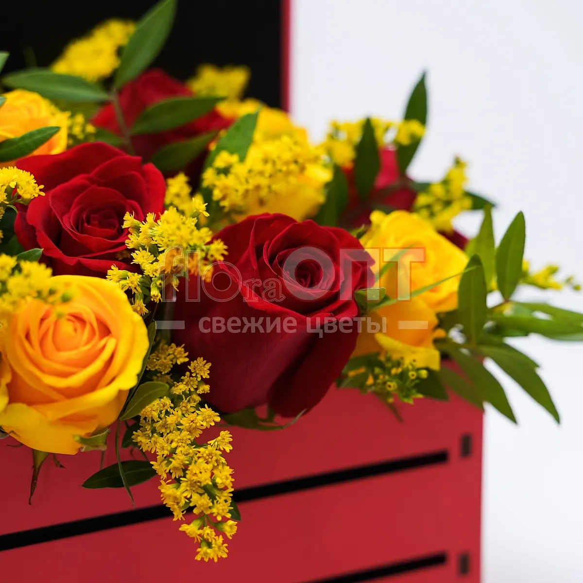 Композиция № 102 с красными и желтыми розами