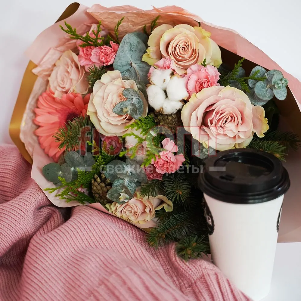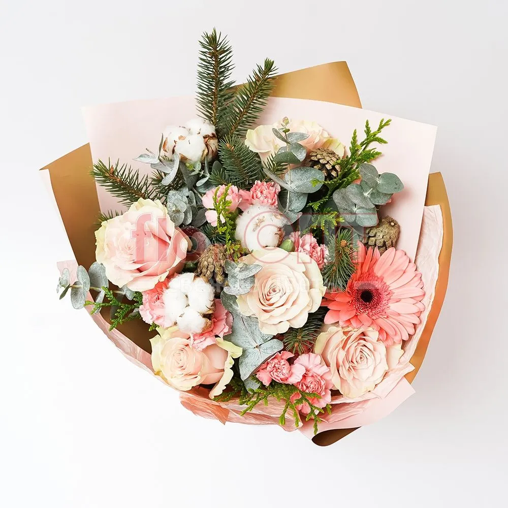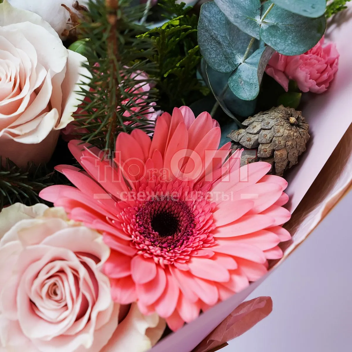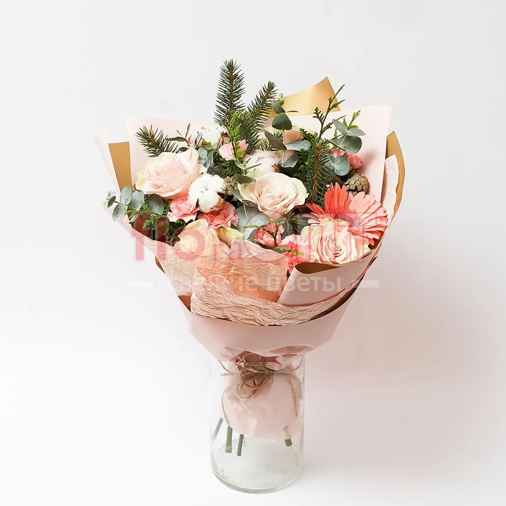 Возможна незначительная замена элементов композиции. Если какого-то цветка или оттенка, как на фотографии, не окажется в салонах, то флорист предложит вам варианты и пришлёт фото на выбор в WhasApp.