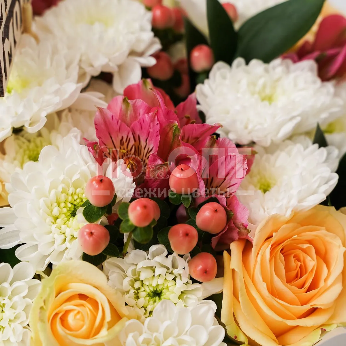 Возможна незначительная замена элементов композиции. Если какого-то цветка или оттенка, как на фотографии, не окажется в салонах, то флорист предложит вам варианты и пришлёт фото на выбор в WhasApp.