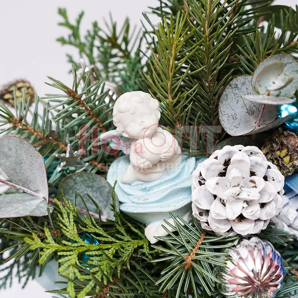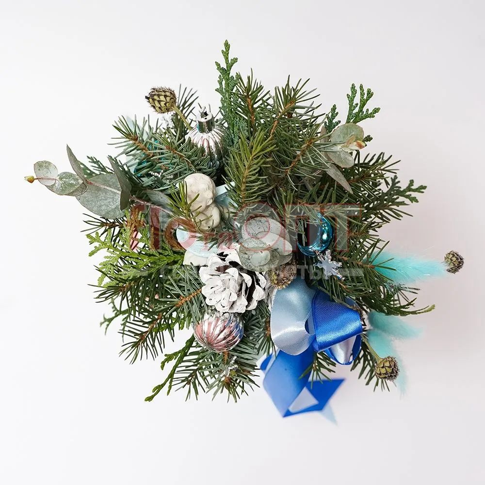 Цветы в составе Лапка Ели , Лента текстиль 80 руб, Оазис , Пленка 250,руб, Эвкалипт Де Люкс, Декор 20 руб, Декор 30 руб, Декор 250 руб, Стекло 500 руб, Туя Зеленая, Расходный материал, ✓ Все цветы в наличии