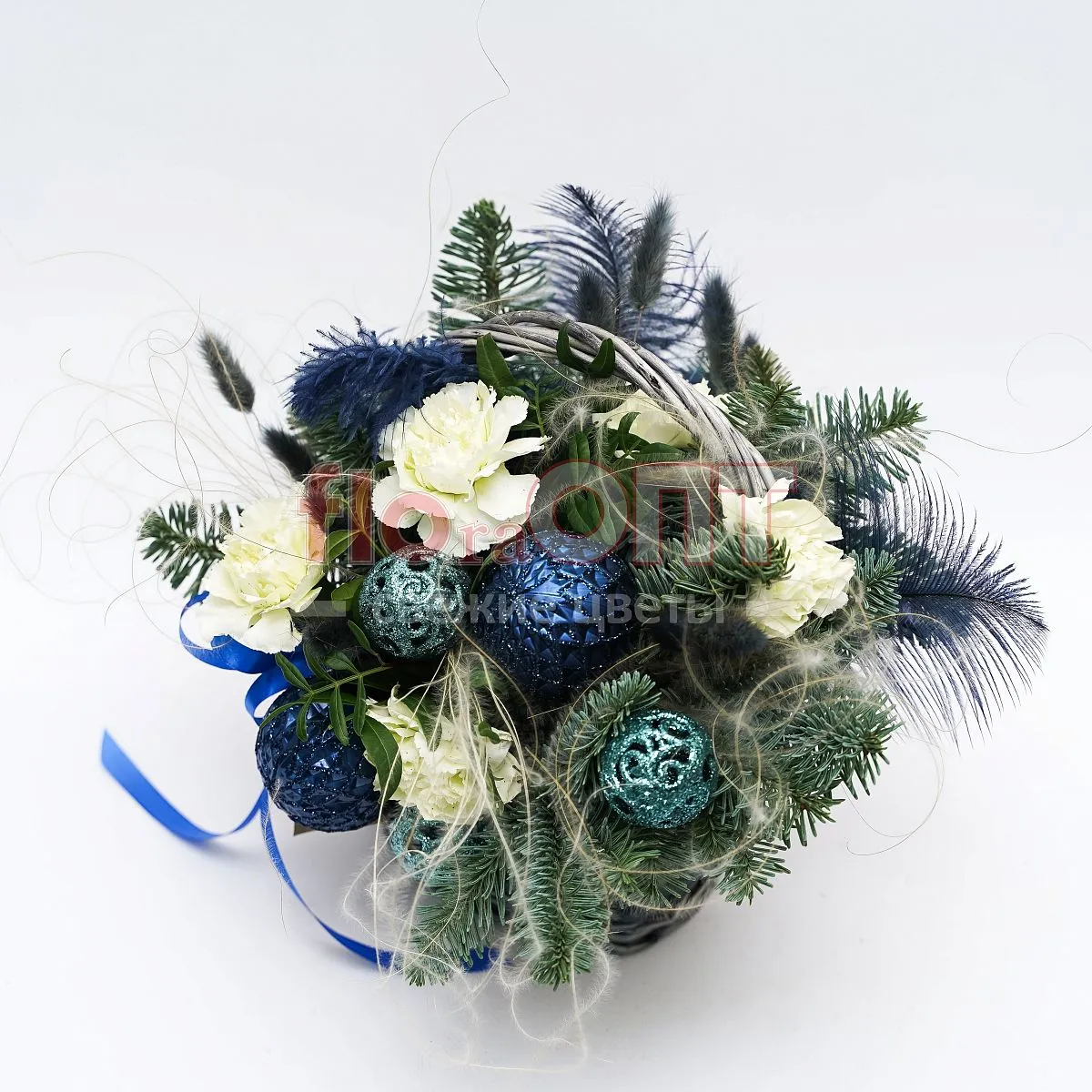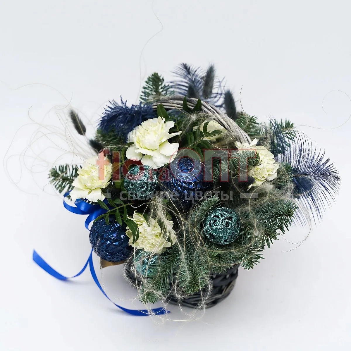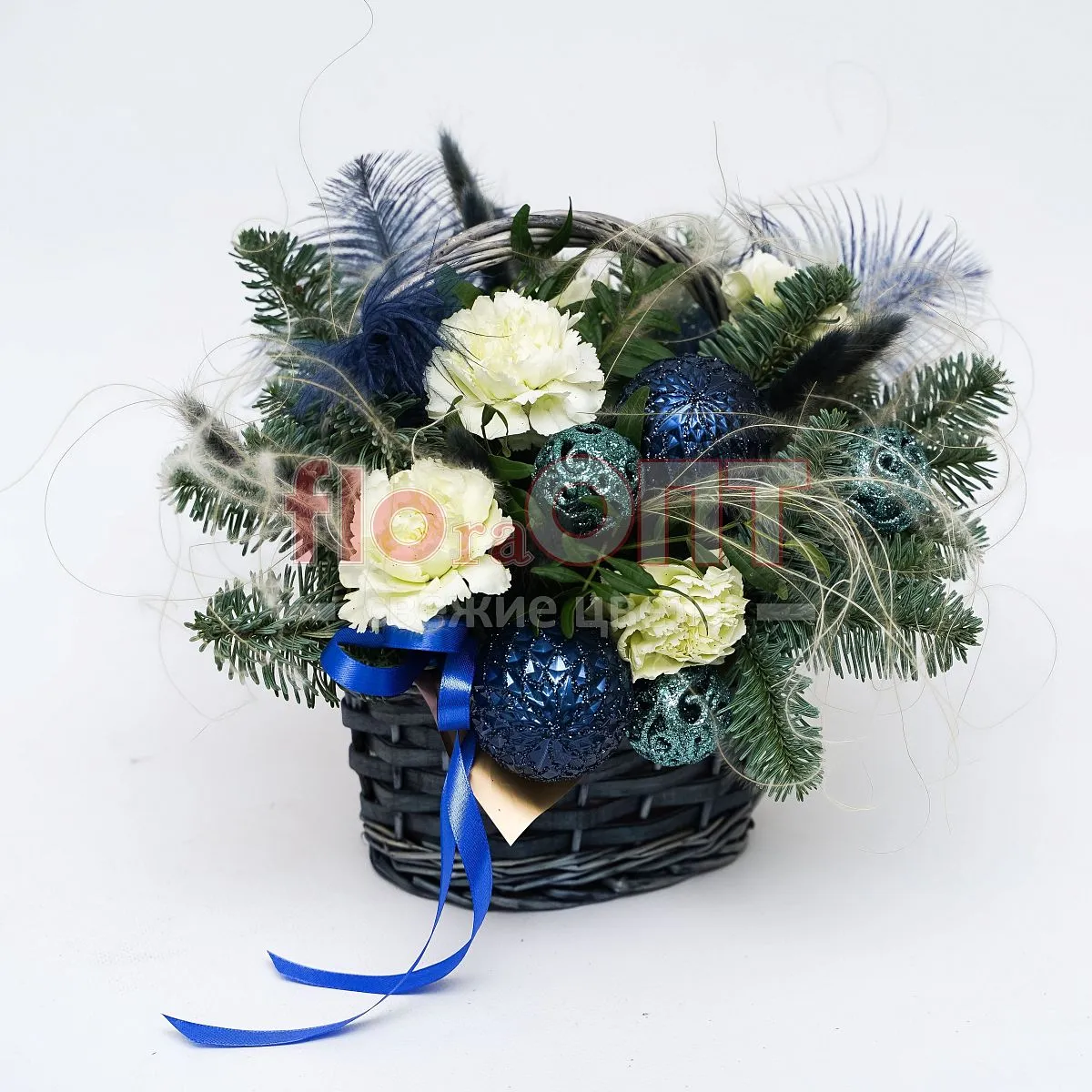 Цветы в составе Гвоздика Одиночная, Крафт- бумага 200 руб, Лапка Ели , Лента текстиль 80 руб, Оазис , Декор 50 руб, Декор 100 руб, Декор 150 руб, Корзина 1200 руб, Расходный материал, ✓ Все цветы в наличии
