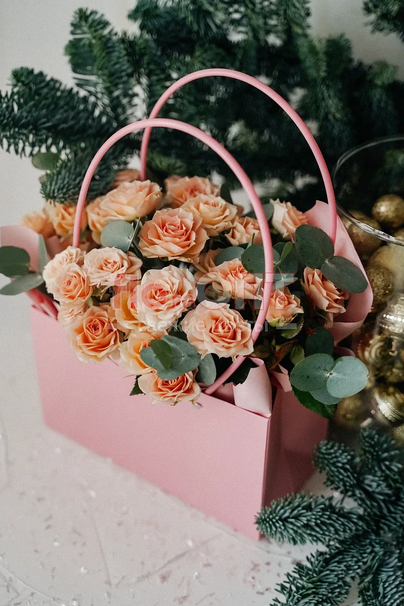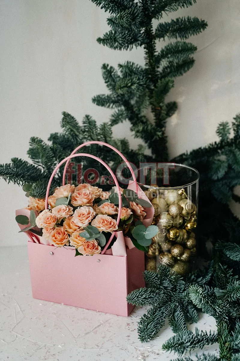 Коробка № 231 с розовыми кустовыми розами