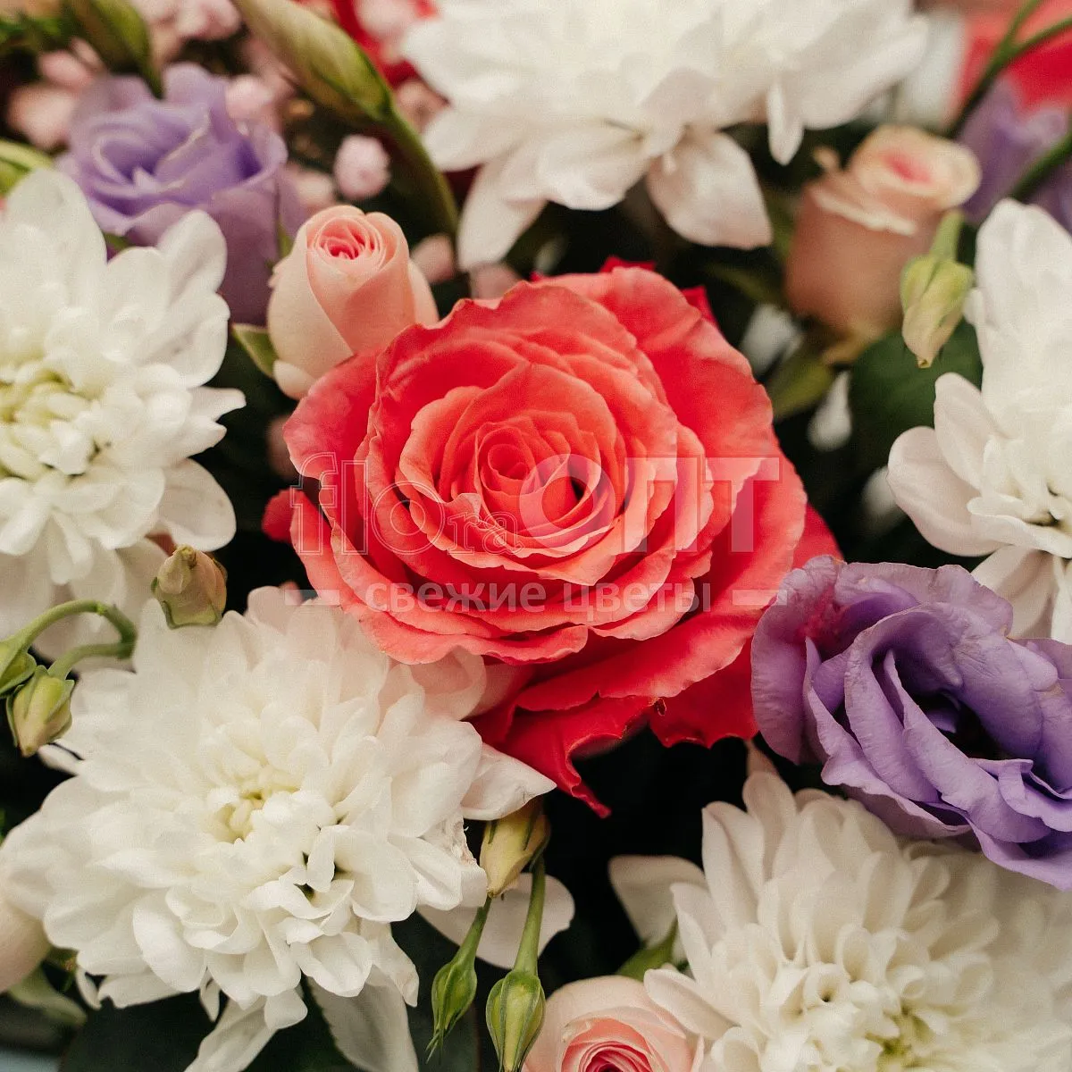 Возможна незначительная замена элементов композиции. Если какого-то цветка или оттенка, как на фотографии, не окажется в салонах, то флорист предложит вам варианты и пришлёт фото на выбор в WhasApp.