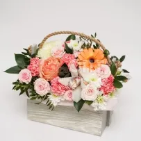 Возможна незначительная замена элементов композиции. Если какого-то цветка или оттенка, как на фотографии, не окажется в салонах, то флорист предложит вам варианты и пришлёт фото на выбор в WhasApp.