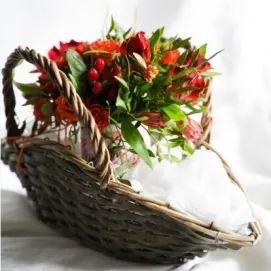 Оригинальным подарком, который оценит Ваш мужчина, станет авторский букет в корзине, куда можно вложить дорогой алкоголь, сигары, или фирменную ручку.