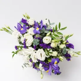Цветочная композиция должна иметь правильные, строгие очертания, с яркими красками и полным отсутствием спокойных и нежных тонов. Как правило, однотонная, максимум – гармоничное сочетание двух цветов (чаще всего темные оттенки: бордовые, фиолетовые, синие букеты).